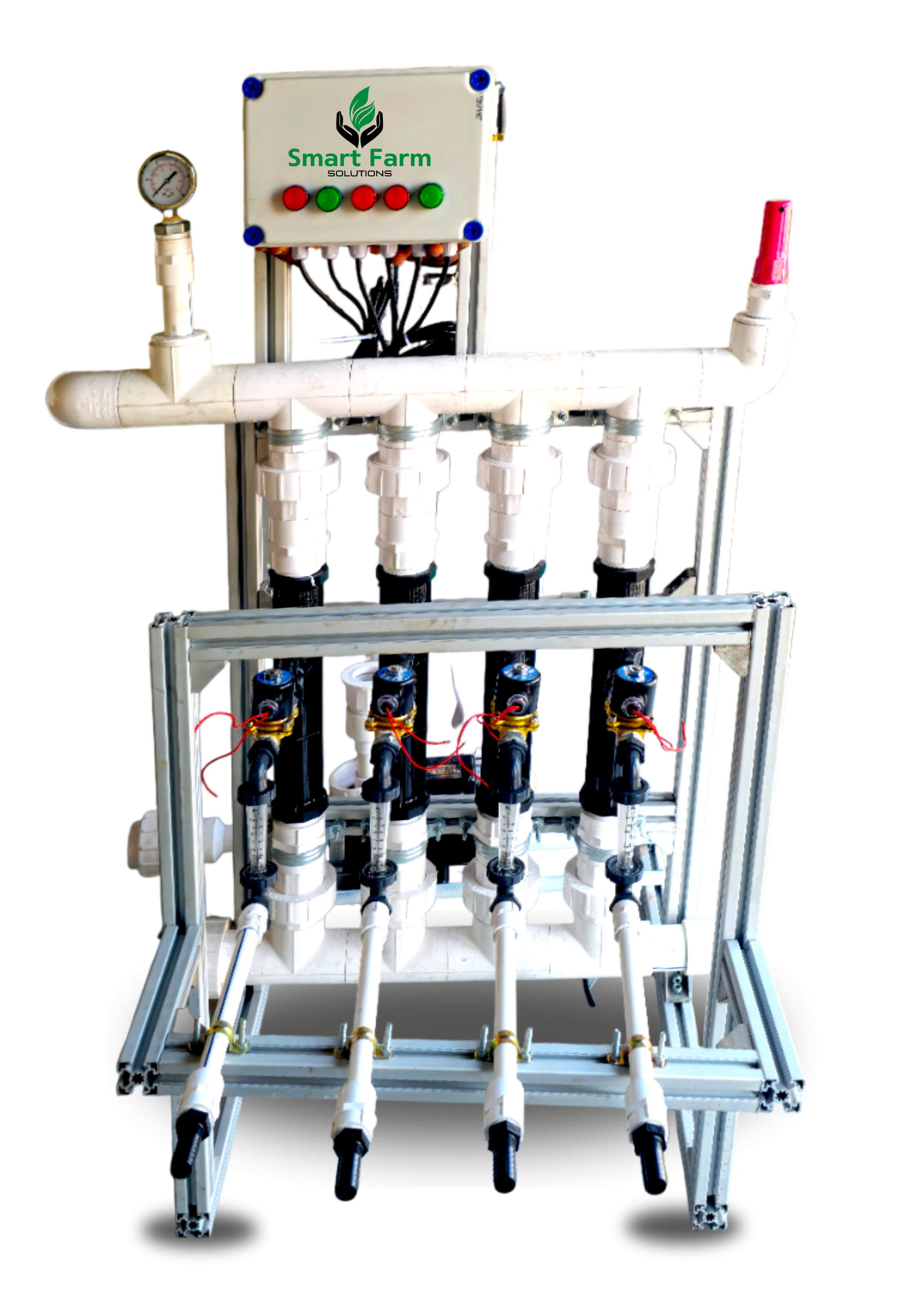 Multi-channel fertigation unit for precise nutrient dosing.