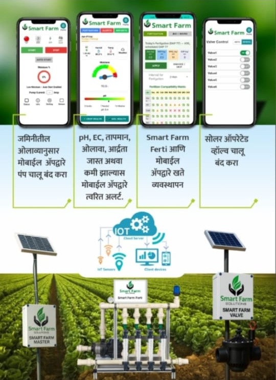 Real-time monitoring, irrigation control, and fertigation automation powered by solar, GSM, and IOT technology.